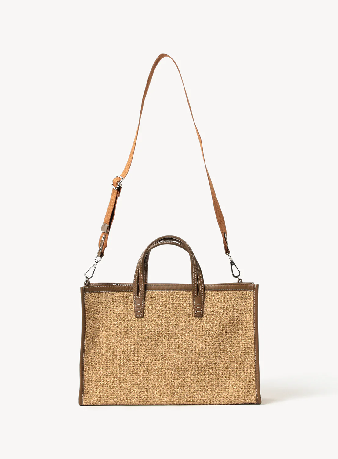 Crafted with cowhide handles and trim, it blends femininity with function. The split handle design offers a comfortable grip, while a removable interior pouch keeps small items organized.