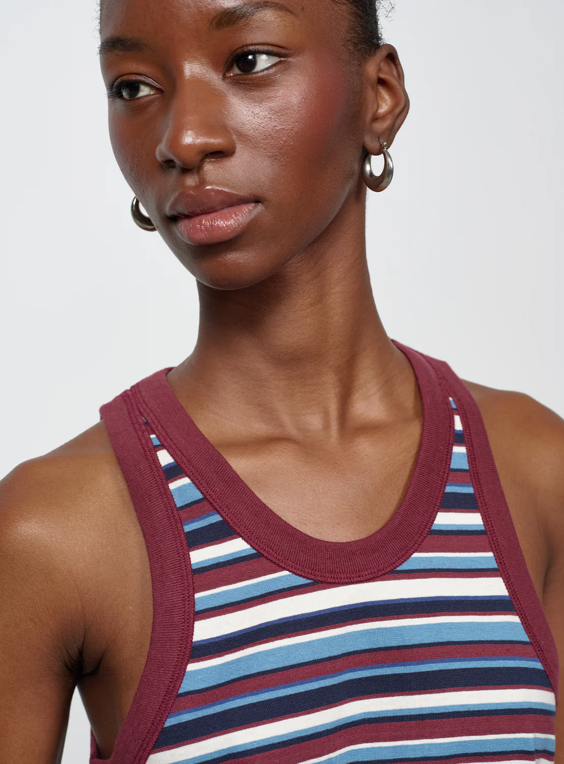 A BEAMS BOY classic refreshed: this multi-stripe tank pairs a nostalgic border pattern with a modern American-sleeve cut for an easy, vintage-tinged look.