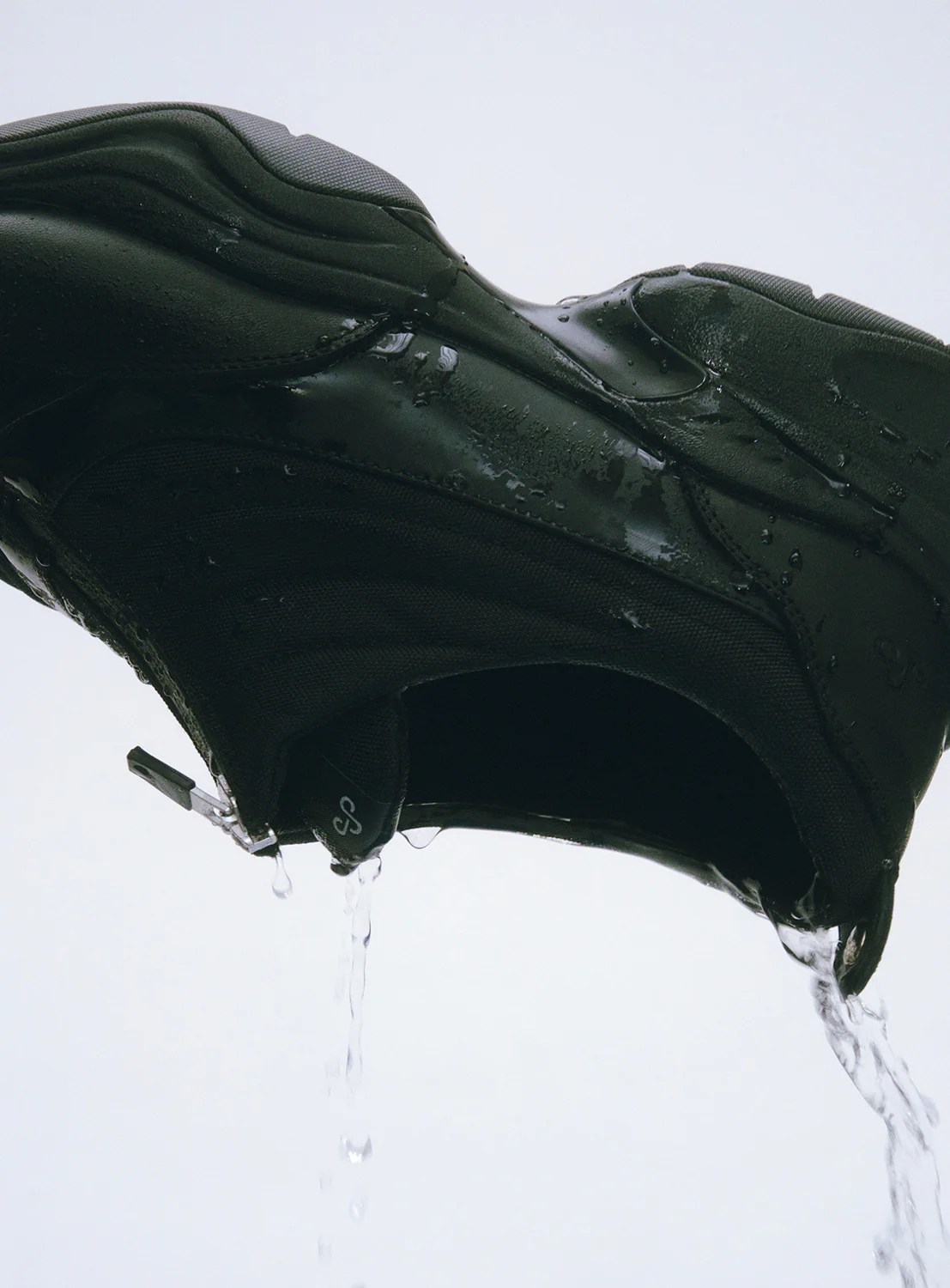 A sleek, utilitarian sneaker designed for function and comfort. These low-profile shoes feature a seamless zipper front for easy slip-on wear, creating a modern silhouette. The contoured, chunky outsole delivers durability and high cushioning, making them perfect for active lifestyles or casual city wear. The combination of waterproof materials and minimalist design ensures versatility across all weather conditions.